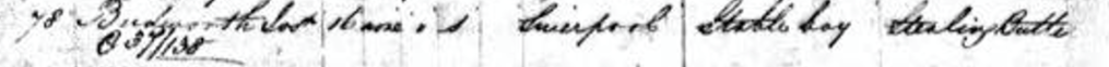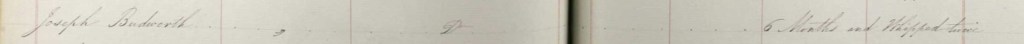 In October 1824, Budworth was listed on the County of Lancashire, Liverpool, England, as being tried for the crime of felony. He was sentenced to “6 months and whipped time.”5
