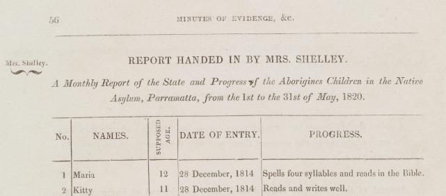 - Brook, J. Kohen, J L. The Parramatta Native Institution and the Black Town : A History (1991). Kensington, NSW: New South Wales University Press, pages 59-62. ↩︎