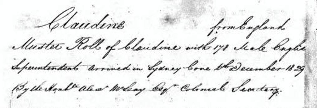 On 15 August 1829, the Claudine arrived in Plymouth. That evening, another 120 convicts were transported onto the ship.