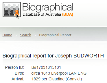 A number of family trees, websites and documents have incorrectly stated that Joseph Budworth the convict born 1813, was actually a man by the name of Joseph Bore born 1811, the son of John Budsworth Bore and Margaret Bore nee Woods.