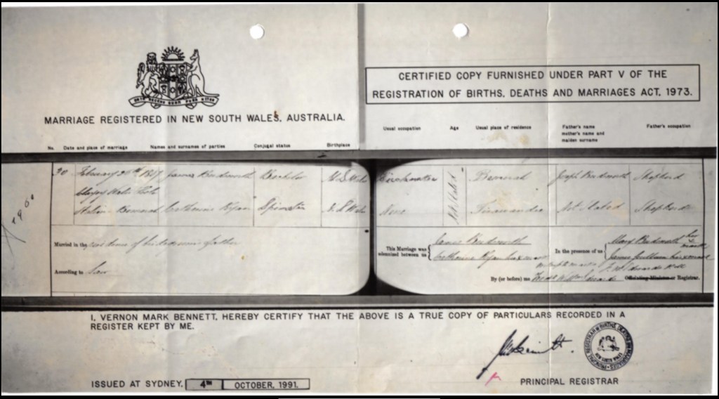 In 1867 married Catherine RYAN in Coonabarabran, NSW.