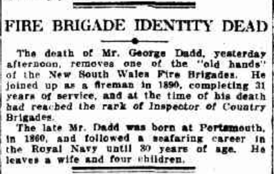 On 2 May 1899, the newspaper Mudgee Guardian and North-Western Representative stated Dadd was a fire brigade instructor:
