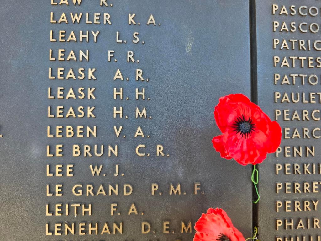 Photographs taken of Vincent Anthony Leben’s name on the Roll of Honour at the Australian War Memorial, Canberra, on 18 November 2025.